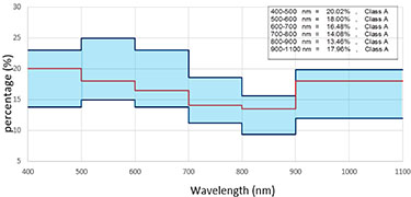 高于ASTM E927-10 A級光譜匹配 (≤25%)